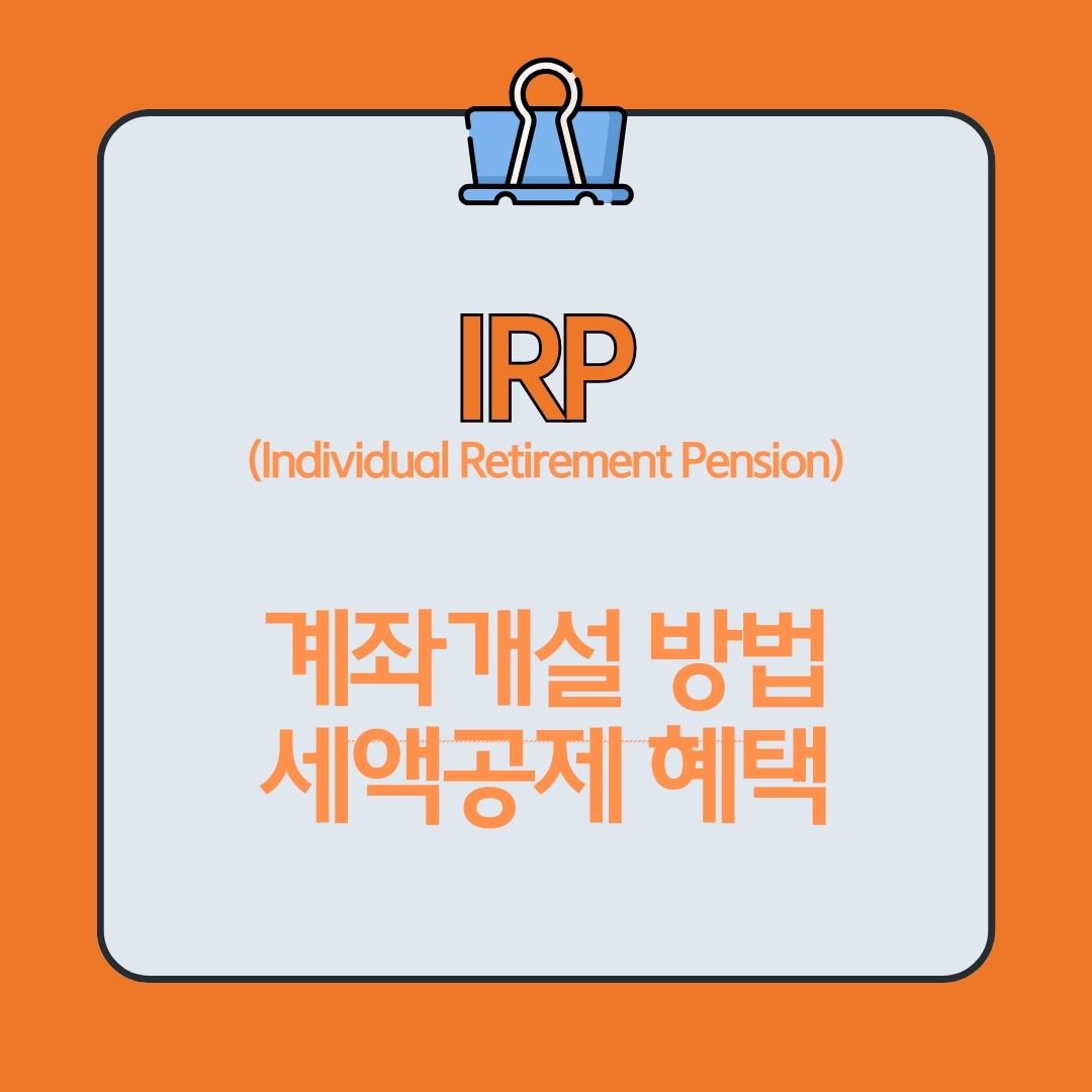 IRP(Individual Retirement Pension)는 퇴직금 또는 개인이 자율적으로 납입한 금액을 노후를 위해 적립하는 계좌입니다.