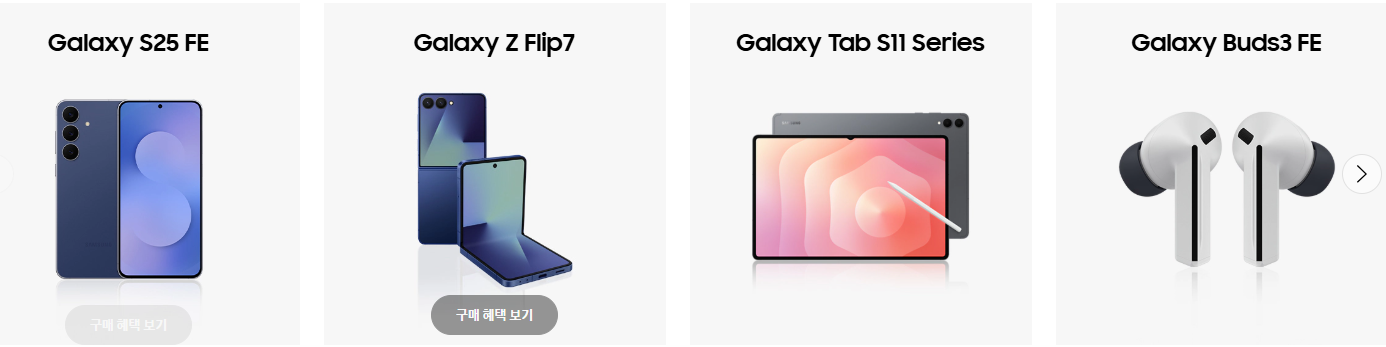 | 🎧 웨어러블 & 태블릿 | 갤럭시 워치8, 버즈, 탭 S10 | 빠르게 품절되는 품목, 실속형 선물로도 인기 |