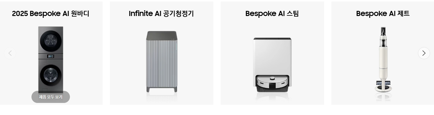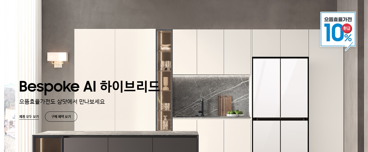 | 🧊 비스포크 생활가전 | AI 냉장고 4도어, 세탁기, 식기세척기 등 | 최대 40~50% 할인, 신혼·가정용으로 인기 많음 |