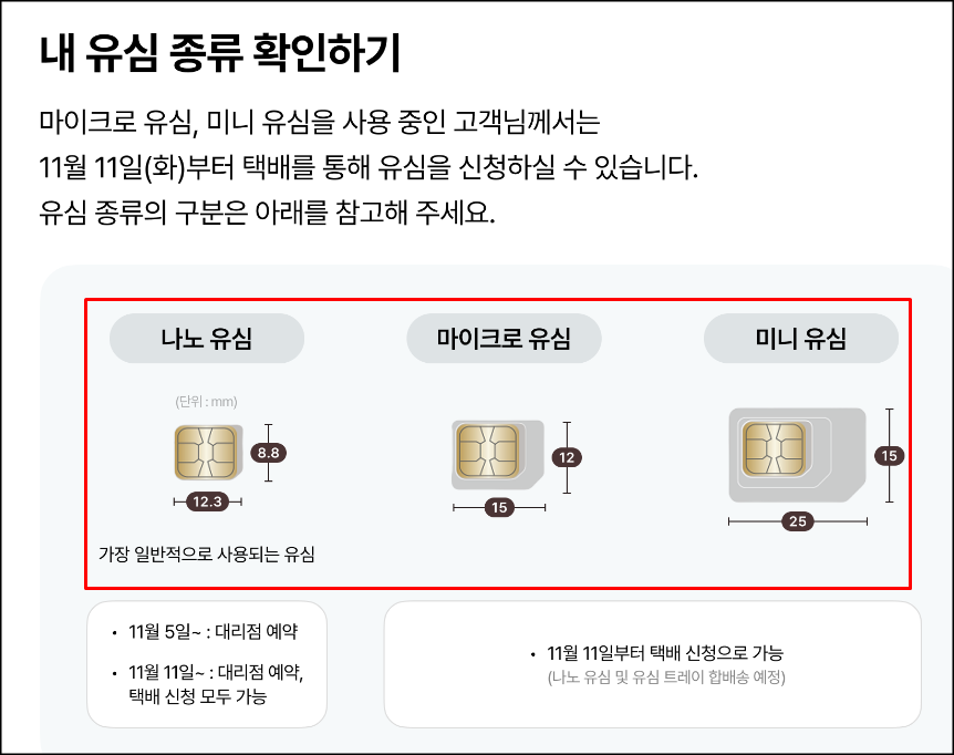 - 11월 11일부터 택배를 통해 유심 신청 가능