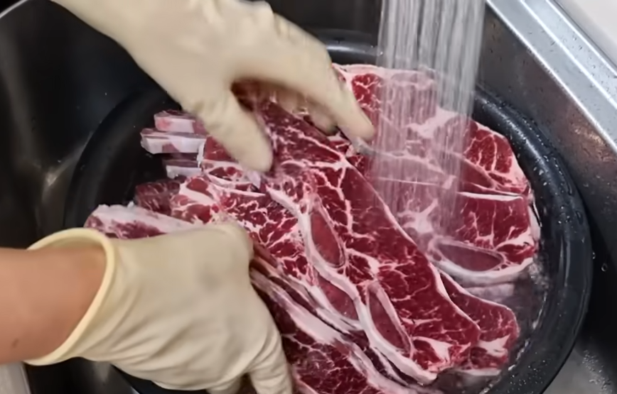 성공적인 LA갈비 재는법의 첫 단추는 바로 청결과 핏물 제거입니다. LA갈비는 기계로 절단하기 때문에 고기 표면에 미세한 뼈가루가 붙어 있습니다. 이를 제대로 제거하지 않으면 식감이 깔깔해집니다.